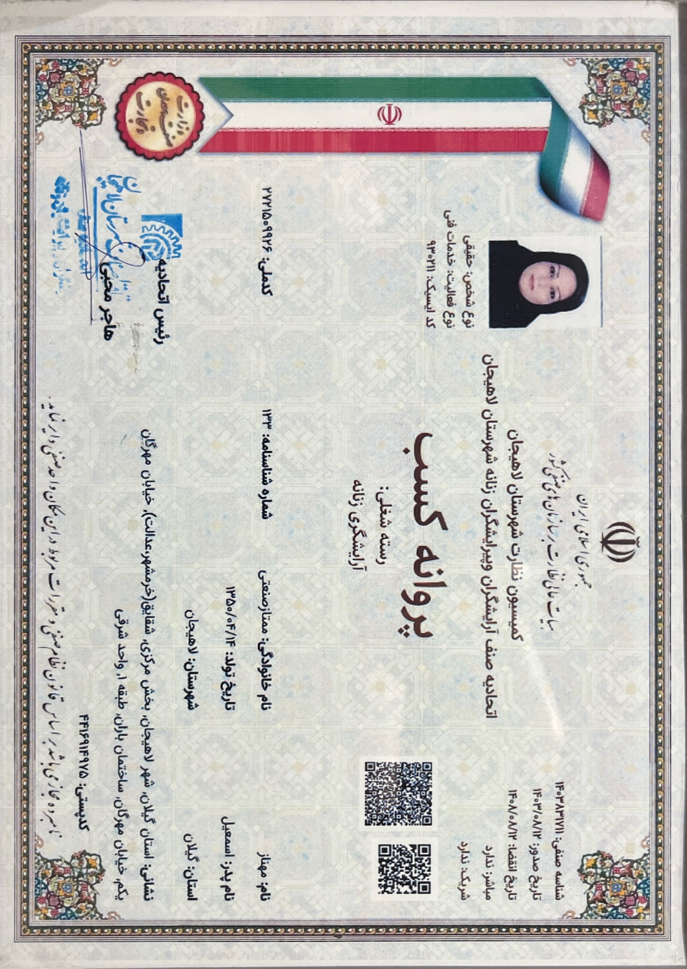 عضو اتحادیه صنف آرایشگران