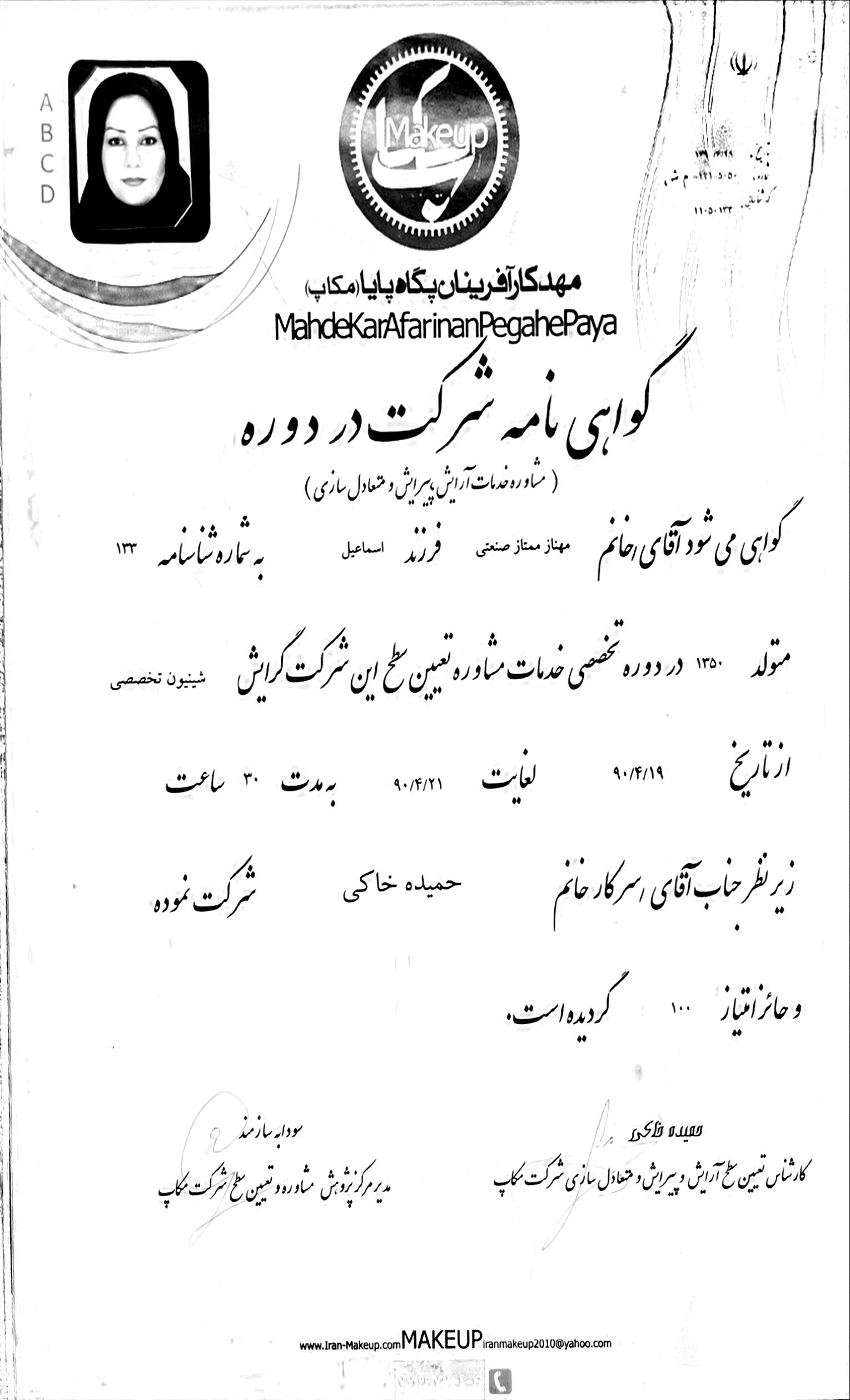 certificate رنگ و دکلره