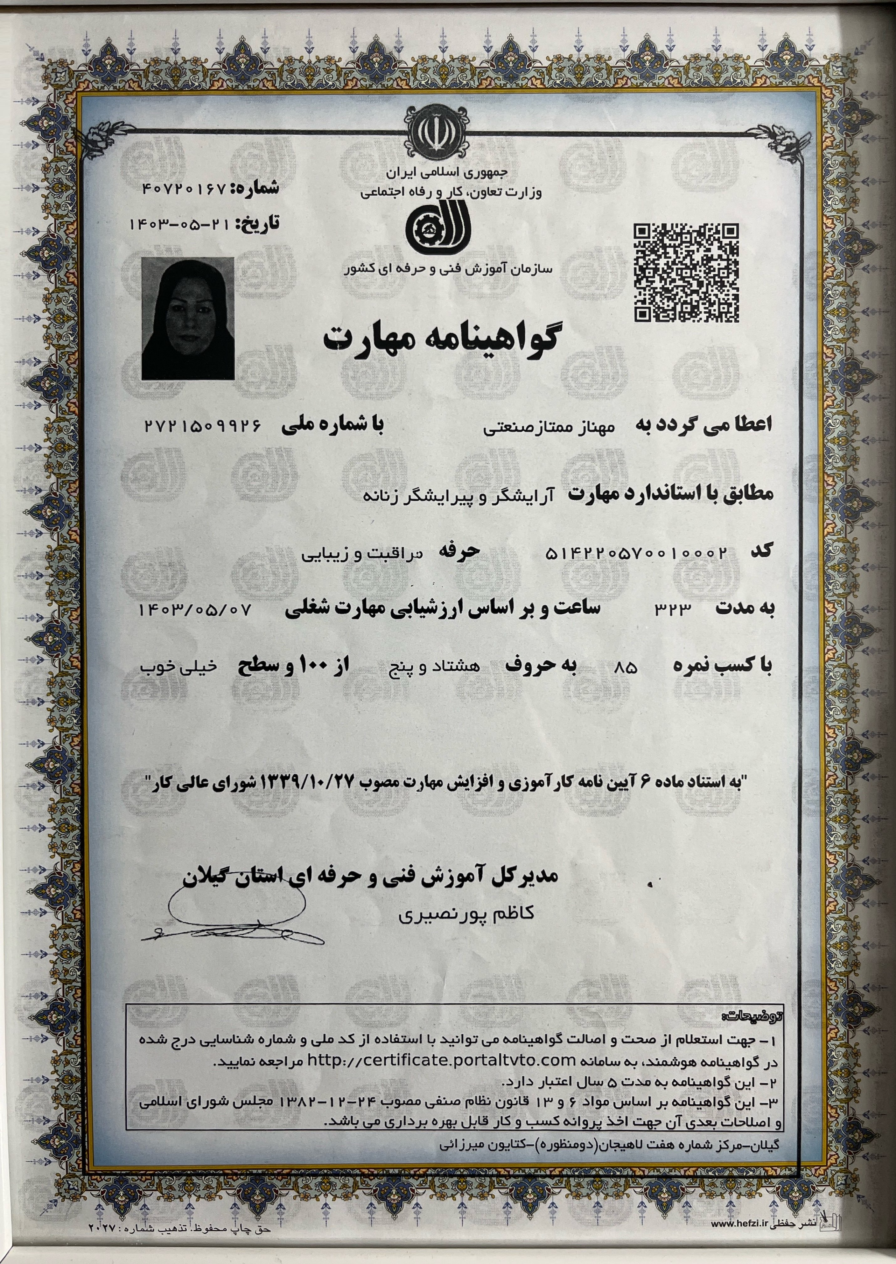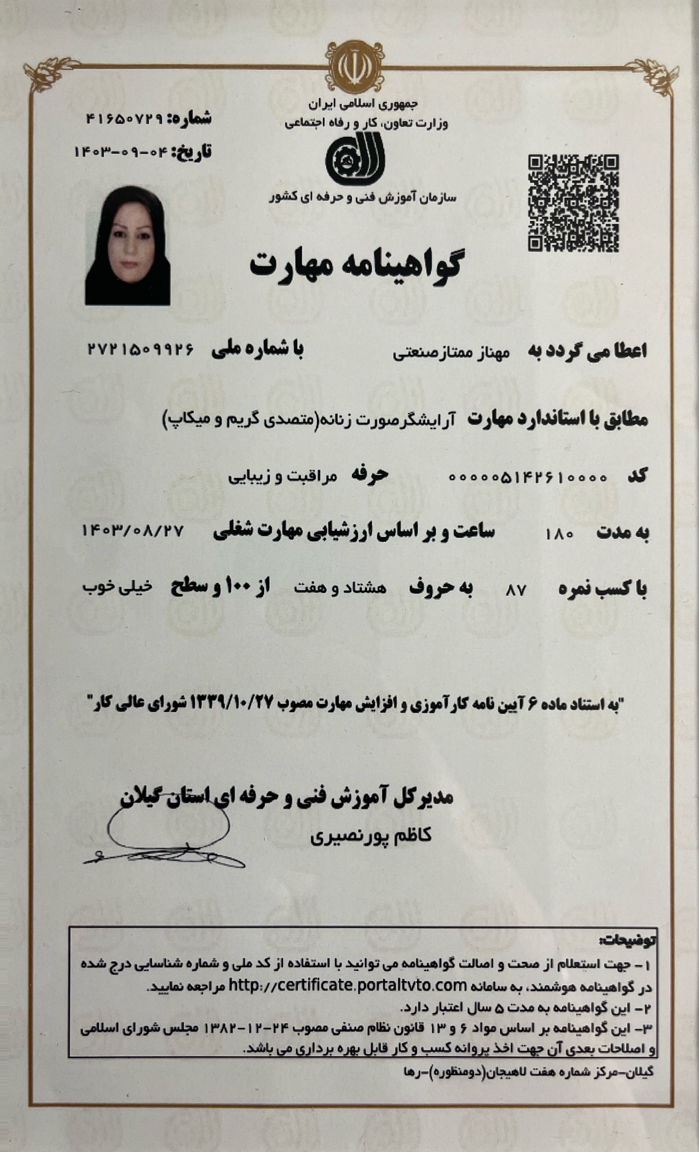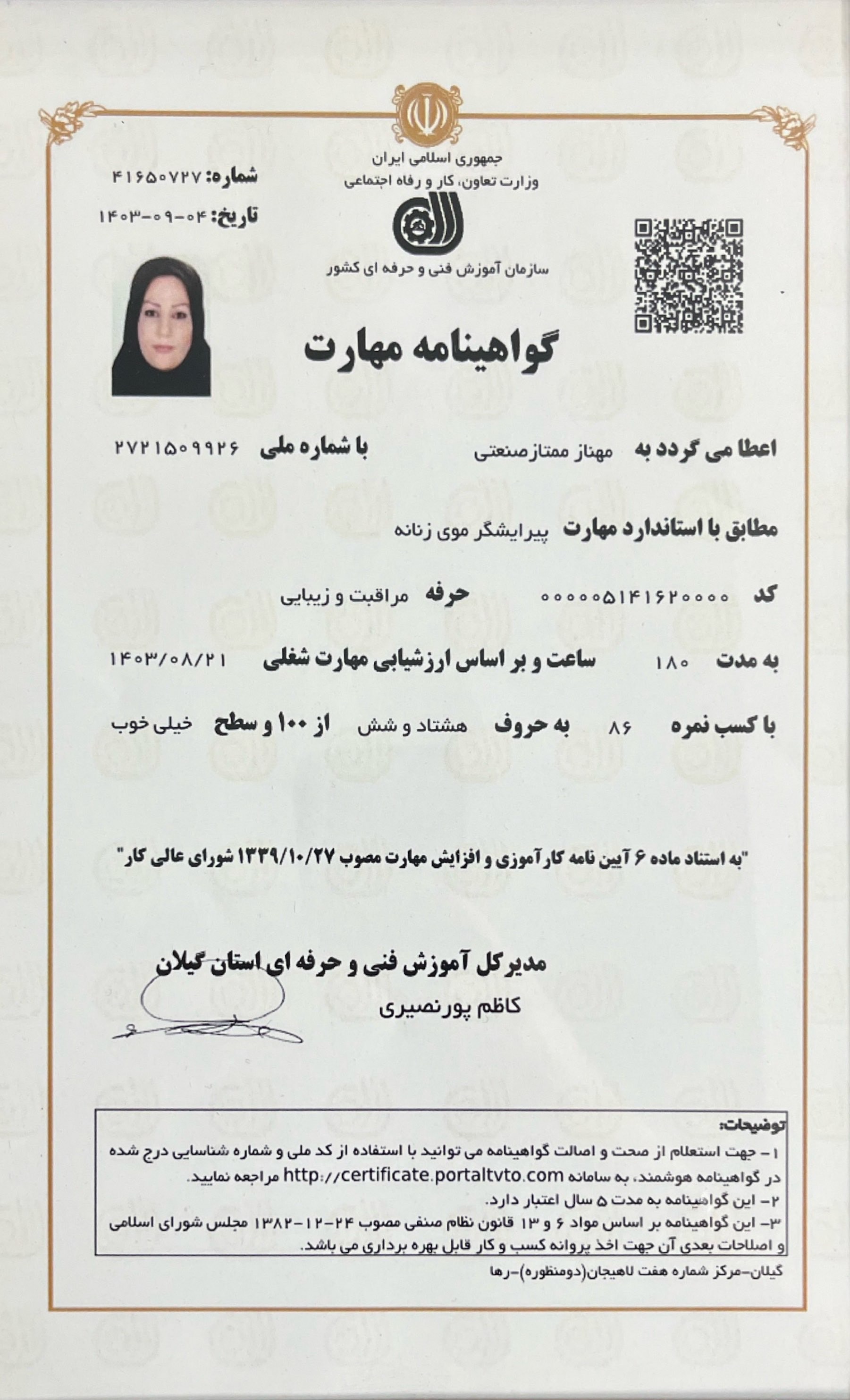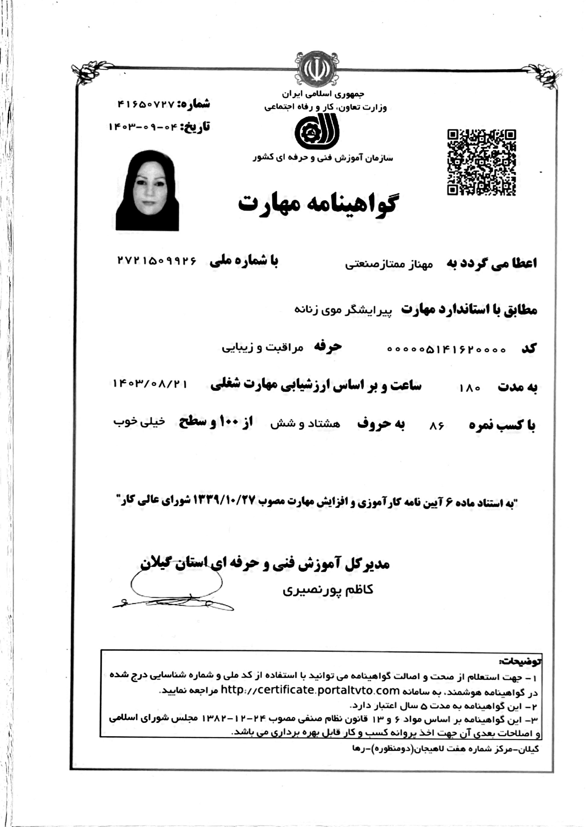 certificate مراقبت از مو