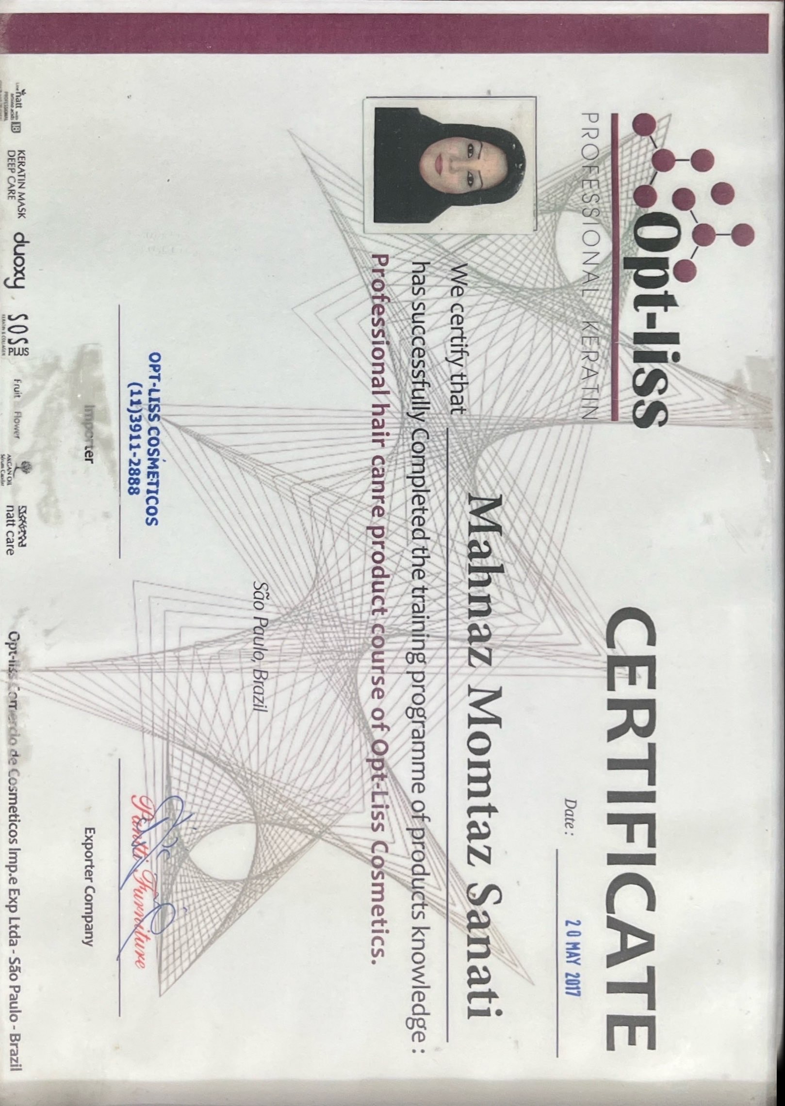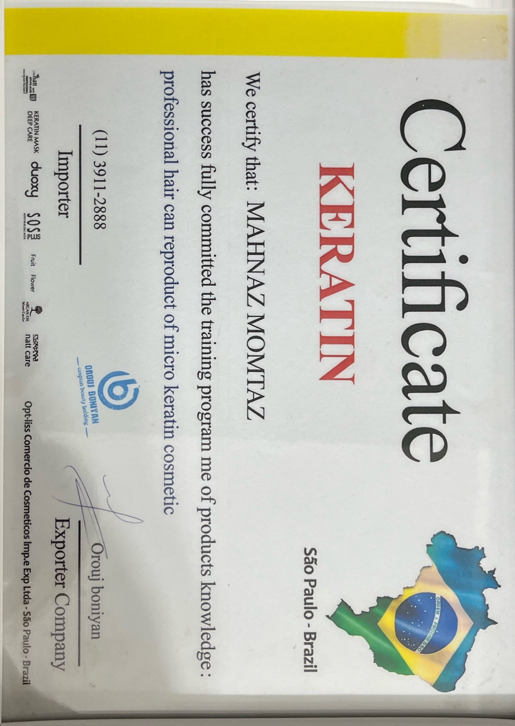 certificate کراتین برزیل